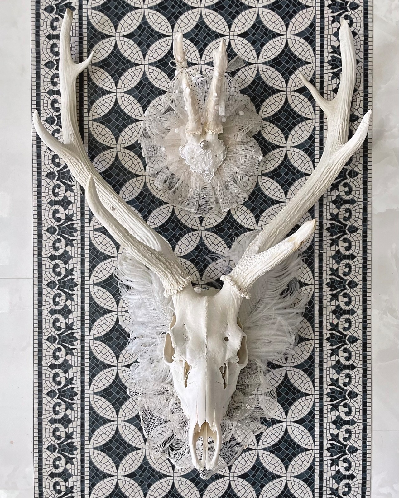 hunting trophy " ma dame " ハンティングトロフィー 鹿角 アンティーク ホワイト アニマル