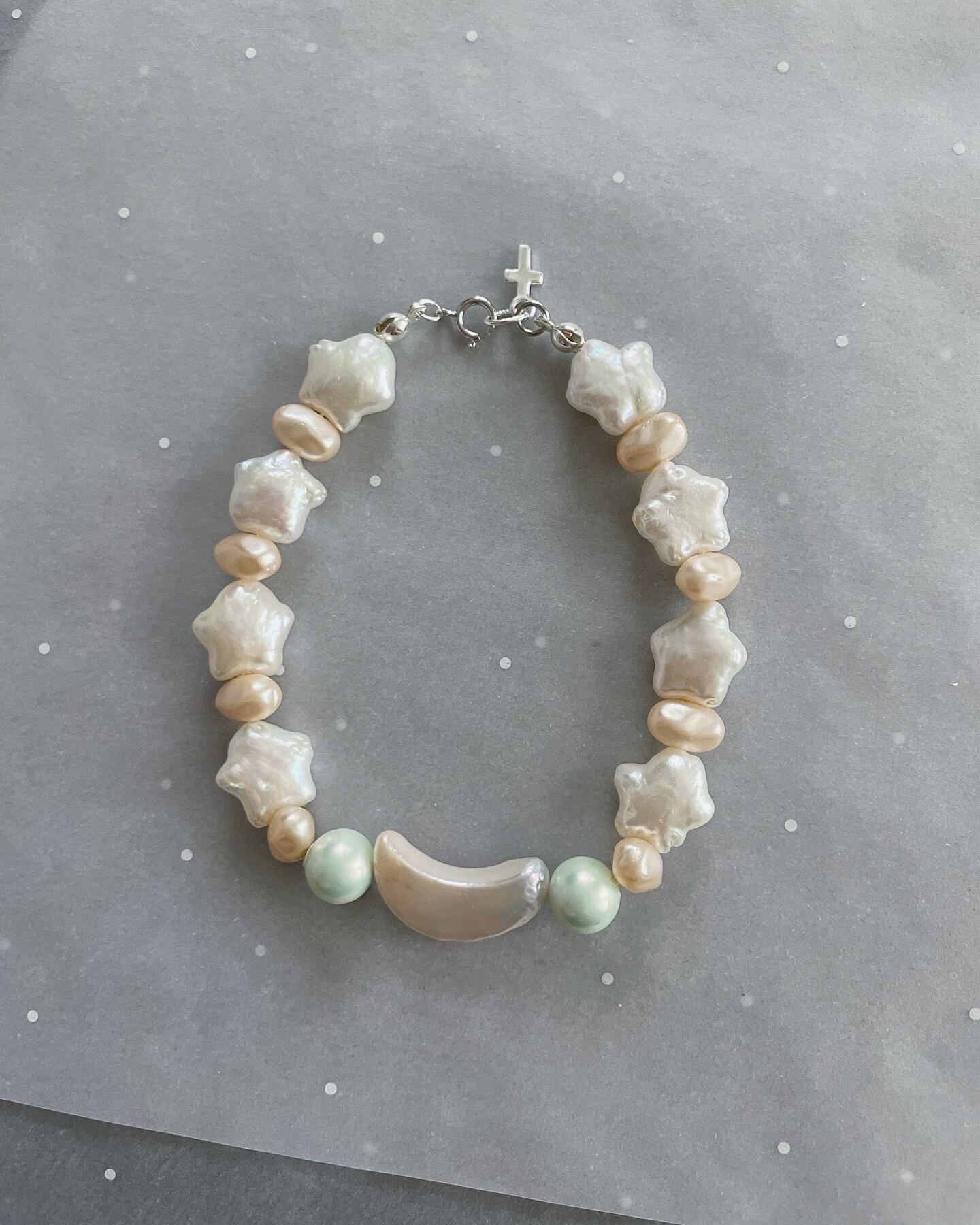淡水パール ブレスレット ✩.*˚ ジェット パール ブレスレット シェル 貝 ホワイト シルバー クロス 星 月